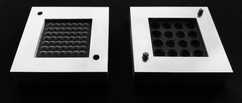 The laser milled molds LMM1 and LMM2 are designed for the thermoplastic molding of LEDs secondary optics
